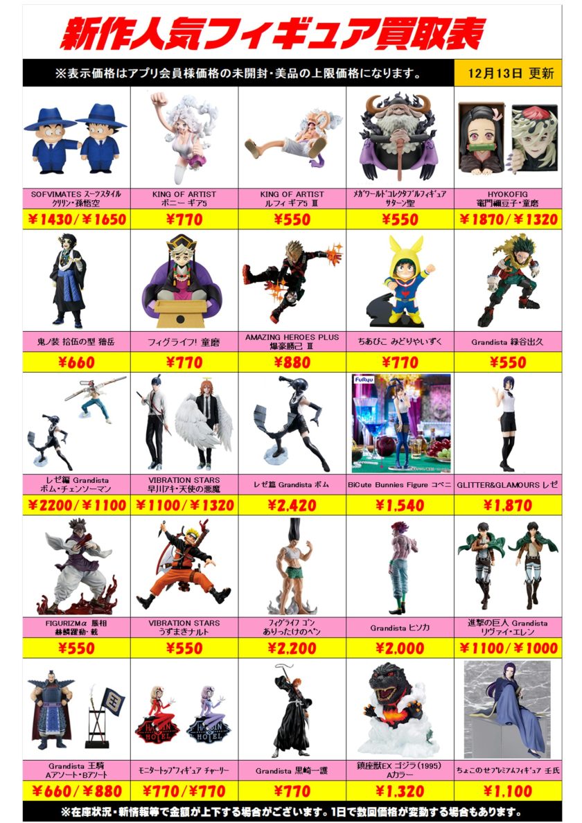 12/13~ 新作プライズフィギュア買取