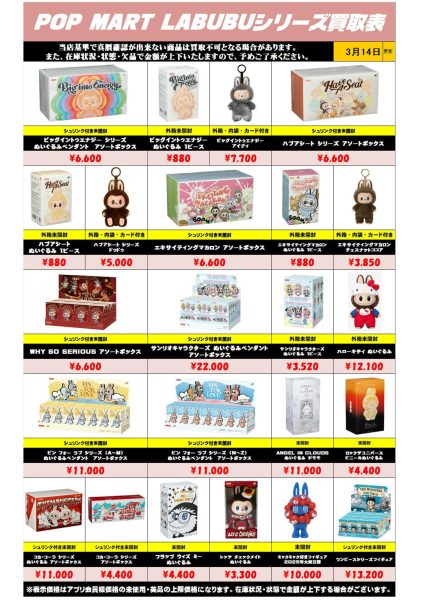 ラブブシリーズも買取リスト更新しました! 3/14~