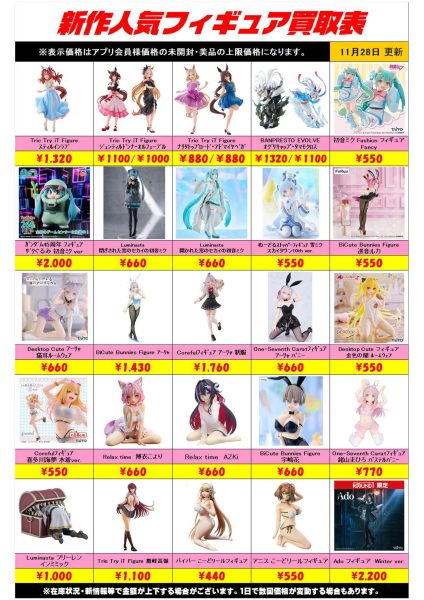 新作プライズフィギュア買取リスト更新しました!