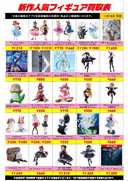 新作プライズフィギュア買取リスト更新しました!