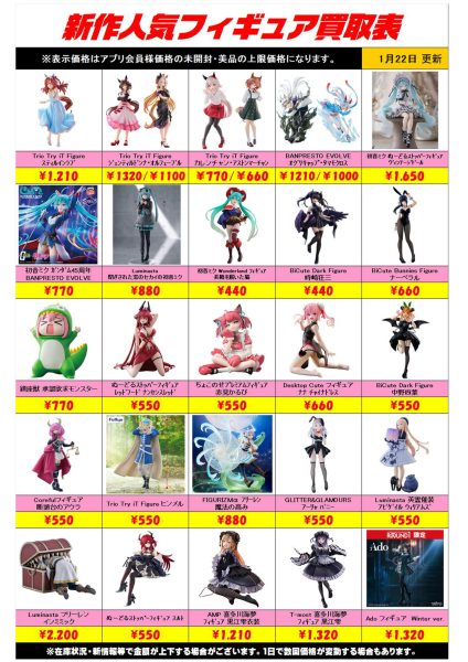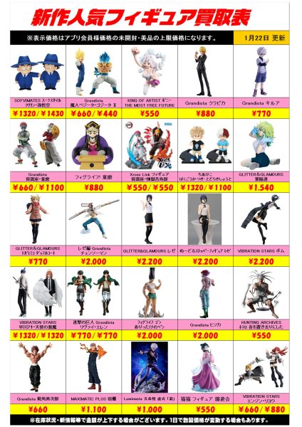 新作プライズフィギュア買取リスト更新しました!