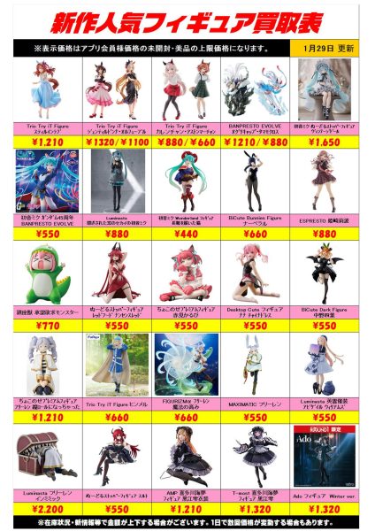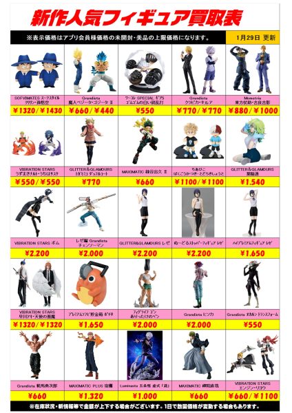 新作プライズフィギュア買取リスト更新しました!