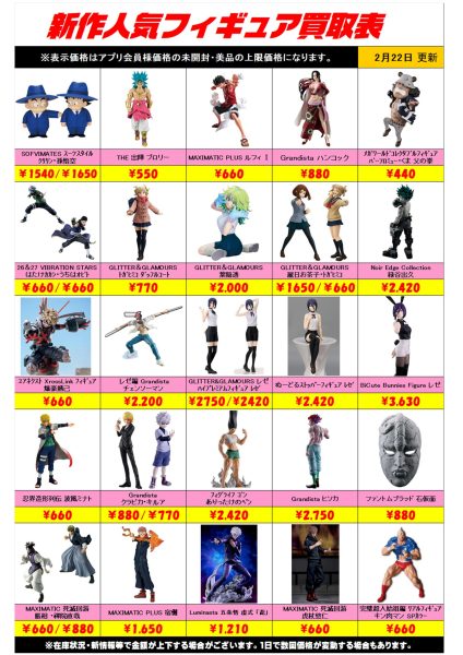 新作プライズフィギュア買取リスト更新しました! 2/22~