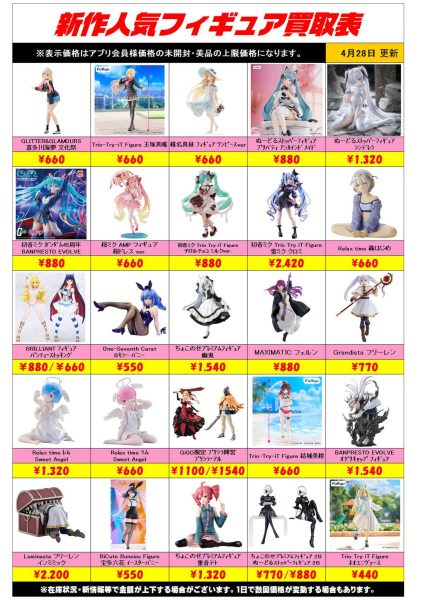 新作プライズフィギュア買取リスト更新しました! 4/28~