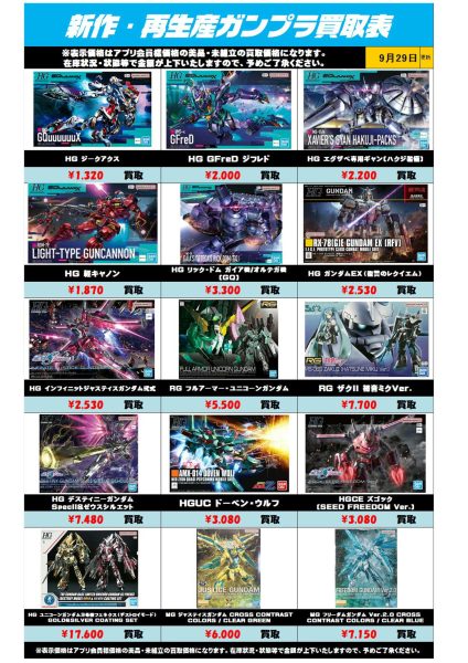 新作・再販ガンプラ買取表 買取金額
