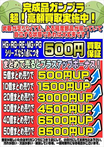 新作・再販ガンプラ買取リスト更新しました! 3/26~ プラスアップキャンペーンも実施中です!