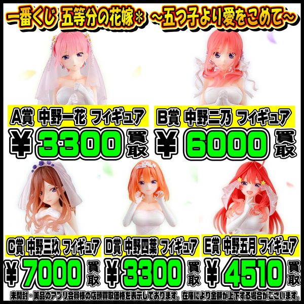 新作一番くじ買取リスト更新しました! ゴジラ・ヒロアカ・5等分の花嫁など