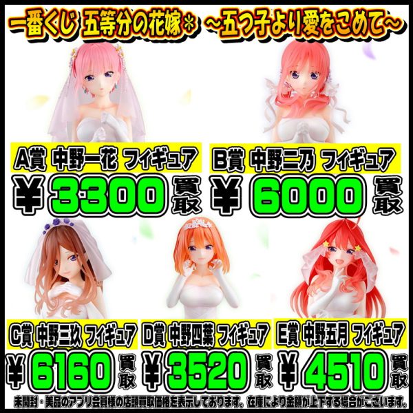 新作一番くじ買取リスト更新しました! 10/28~ゴジラ・ヒロアカ ・五等分の花嫁など